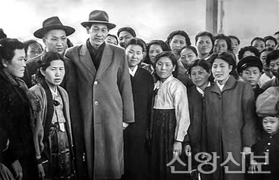 1956년 군산집회를 마치고 참석자들과 함께 기념 촬영을 한 사진. 하나님 오른쪽에 검은 옷을 입은 사람이 김순모 권사다.