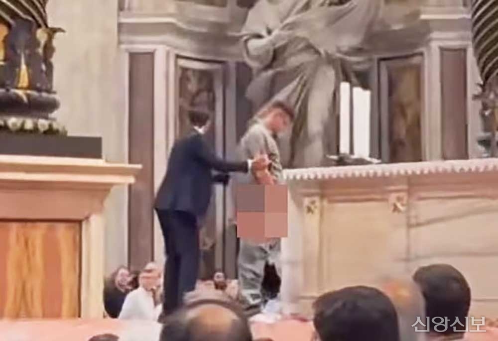 한 남성이 성 베드로 성당 제단에 소변을 보고 있다.(X)