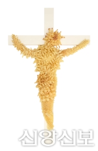 <자료1> 십자가에 못 박힌 개구리와, 라텍스 돌기로 표현한 예수 (출처: 빌트)