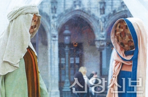 브뤼셀 그랑 플라스의 얼굴 없는 구유 장식 예수가 태어난 마굿간 재현에 천으로 만든 실루엣과 여러 색의 천으로 표현한 얼굴이 사용됐다. (출처: 벨기에 브뤼셀 타임즈) *구유: 가축에게 먹이를 주는 통