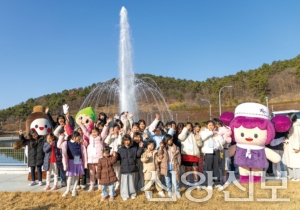 ‘푸드탐정단’-식품단지 투어를 마치고 캐릭터들과 함께 분수대 앞에서 기념사진