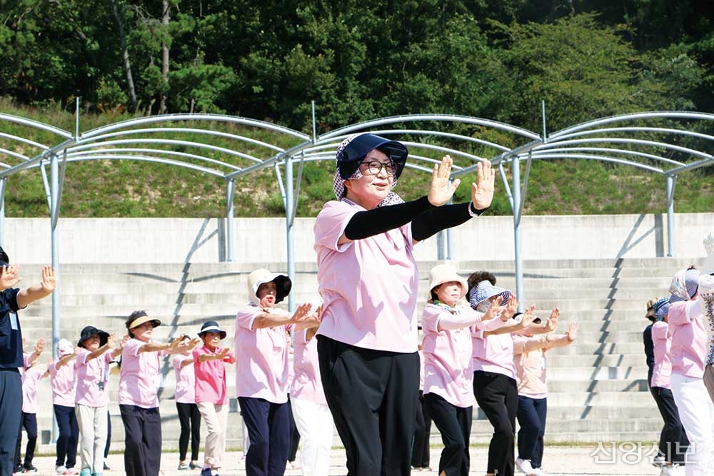 9월 여성회 축복일을 맞아, 10월에 열릴 2025 천부교 체육대회의 첫 경기인 ‘방글방글 체조’를 청·백군 선수들이 연습하고 있다.